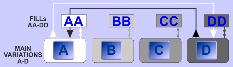 | Und wenn man nun in eine bestimmte Variation einen Fill einbauen will, ohne die Variation zu verlassen, nun, dann muss logischerweise der gleichgewichtige FILL diese Aufgabe übernehmen. | |